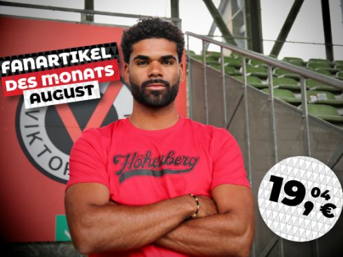 Für den voraussichtlich letzten heißen Monat 2022 geht es bei dem Fanartikel des Monats luftig weiter. Mit dem T-Shirt „Höhenberg“ in Rot könnt ihr eure Liebe zu der Viktoria und dem Sportpark auch bei über 30 Grad weiterhin zum Ausdruck bringen. Das stilvolle Shirt kann im Alltag oder im Büro getragen werden. Ganz besonders gerne wird es natürlich auch im Sportpark selbst gesehen! Erhältlich ist das Shirt in der Geschäftsstelle, im Online-Shop und bei Betten Sauer für lediglich 19,04€.