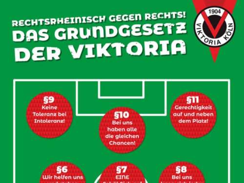 Viktoria Köln ist gemeinsam mit dem Fußball-Verband Mittelrhein (FVM) einer von vier Pilotstandorten des vom BMI geförderten DFB-Projekts „Fußball Verein(t) Gegen Rassismus“. Die weiteren Standorte sind der 1. FC Saarbrücken, der FSV Zwickau und Eintracht Braunschweig jeweils in Zusammenarbeit mit ihren Landesverbänden.