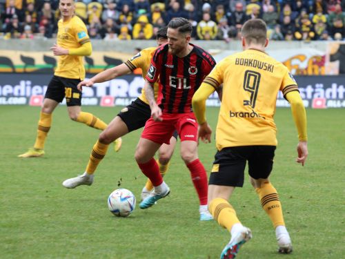 Auch nach Wiederanpfiff machten die Gastgeber zunächst mächtig Dampf, ehe Simon Stehle mit einem starken Solo über die rechte Seite erstmals für echte Entlastung sorgte, aber aus spitzem Winkel an Keeper Stefan Drljaca scheiterte (55.). Wenige Minuten später hatte Mike Wunderlich die nächste Kölner Chance, scheiterte aber aus halblinker Position ebenfalls am Dynamo-Goalie.