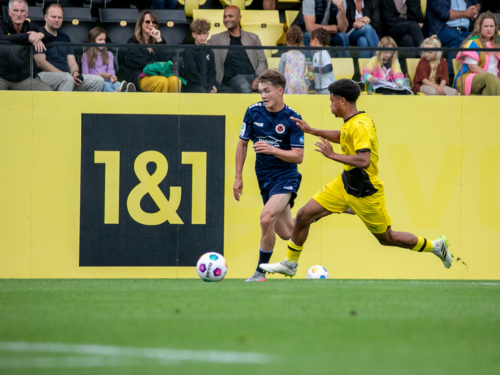 In der 23. Minute erhöhte der BVB per Ecke zum 2:0, erneut war es ein Kopfball, der die Schwarzgelben jubeln ließ. In Hälfte zwei blieben die Westfalen spielbestimmend, erzielten – wieder per Kopf – das 3:0 in der 58. Spielminute. Keeper Oskar Hill verhinderte mit einigen guten Paraden einen höheren BVB-SIeg, die beste Chance hatten unsere Jungs über einen Distanzschuss von Kerim Taskale.
